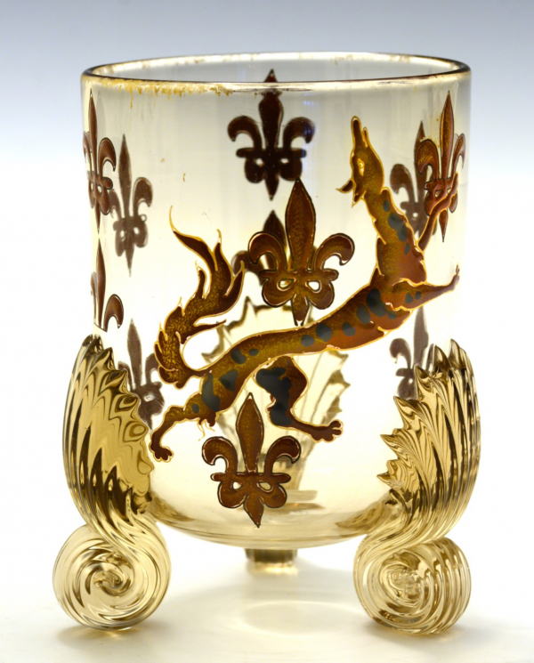 ガレ 「グレーハウンド文百合紋章花器」 高さ12㎝ 1880年頃